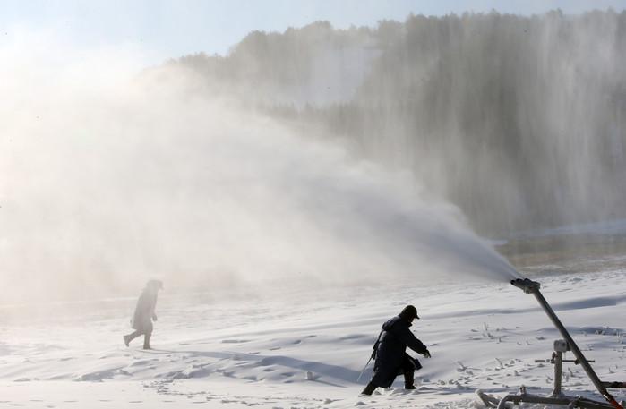 올가을 들어 가장 추운 날씨를 보인 4일 오전 강원 평창군 용평 스키장이 제설작업을 벌이고 있다.