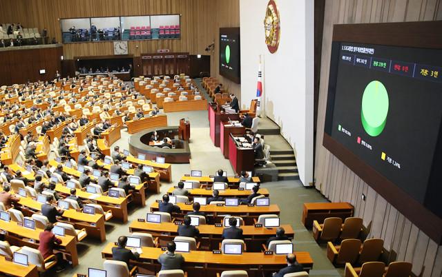 10일 오전 서울 여의도 국회본회의에서 민식이법으로 불리우는 도로교통법일부개정법률안이 통과되고 있다. /연합뉴스