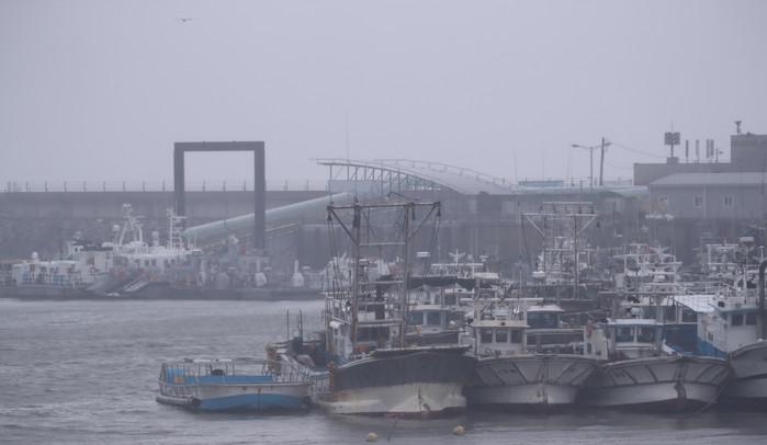연평도를 포함한 서해5도에 강풍주의보에 이어 호우주의보까지 발효되며 장맛비가 계속된 24일 인천 옹진군 당섬선착장에 출항통제로 어선들이 정박해 있다.
