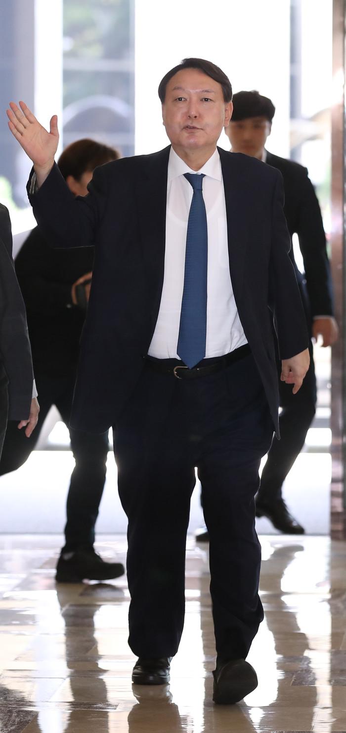 윤석열 검찰총장이 25일 인천 파라다이스시티 호텔에서 열린 29차 마약류퇴치국제협력회의(ADLOMICO)에 참석하고 있다.