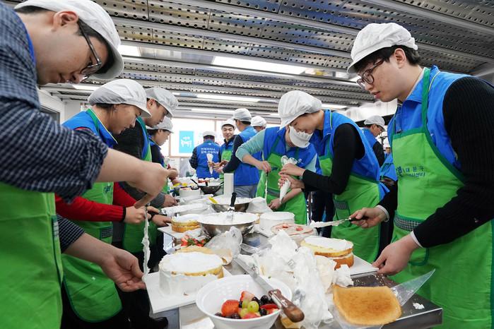 서울 동대문구가 최근 동대문구자원봉사센터(답십리1동 주민센터 4층)에서 ‘동아ST와 함께하는 사랑의 케이크 만들기 및 전달 봉사’ 행사를 개최, 생크림 케이크 100개를 만들고, 즉석밥·통조림 햄·양말 등 생필품 480세트를 포장했다. 사진은 직접 케이크를 만들고 있는  참가자들의 모습.(사진제공=동대문구)