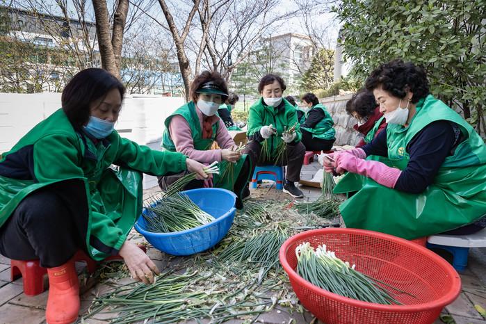 서울 광진구가 코로나19로 인해 어려움을 겪는 지역내 홀몸노인들을 위해 지난 25일 광진구 새마을부녀회와 함께 '밑반찬 나눔 봉사'에 나섰다. 사진은 참여자들이 음식을 만들고 있는 모습.(사진제공=광진구청)