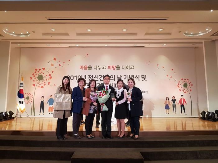 서울 도봉구는 최근 보건복지부가 더케이서울에서 개최한 ‘2019년 정신건강의 날 기념식’에서 지역사회 정신건강 우수사례 부문에 선정돼 정신건강 프로그램 보건복지부장관상을 받았다. 사진은 보건소 관계자들이 기념촬영을 하는 모습.(사진제공=도봉구청)