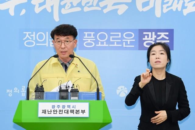 | 김종효 광주광역시 행정부시장이 10일 오후 시청 5층 브리핑룸에서 이태원 클럽 집단감염 관련 지역사회 확산 전파를 완전히 차단하고 단, 하나의 감염 요인까지도 미연에 방지하고자 행정명령을 발표하고 있다. / 광주광역시 제공 |