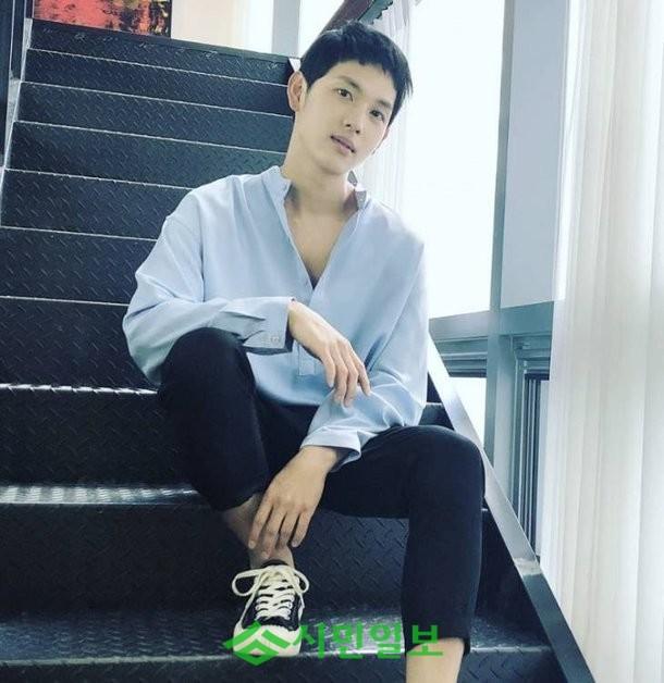 공개된 사진 속 임시완은 하늘색 셔츠와 검정색 바지를 입고 계단에 앉아 포즈를 취하고 있는 모습이다.