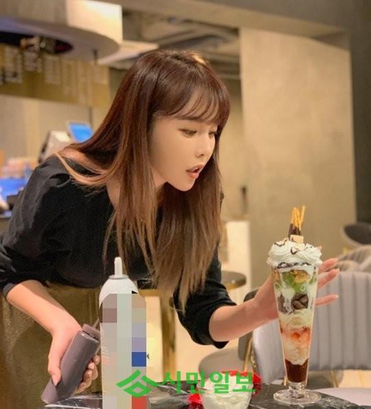 가수 홍진영이 파르페를 만들어 눈길을 끌었다.