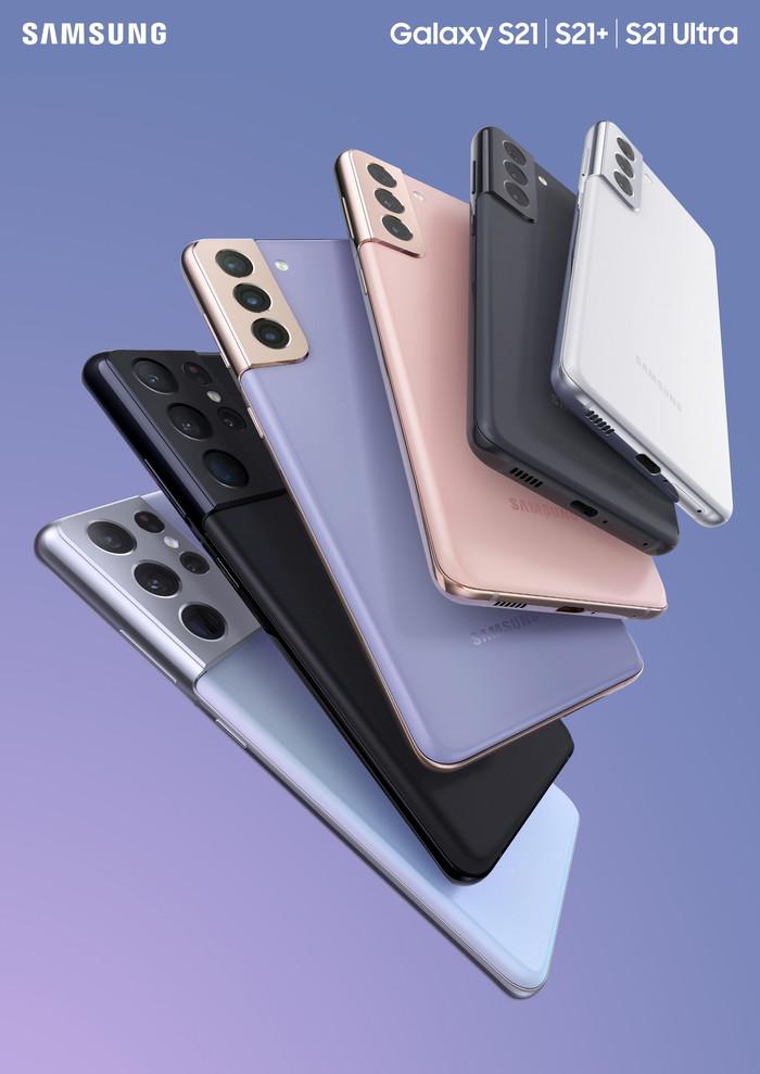 가볍고 컴팩트 한 사이즈의 '갤럭시 S21'은 팬텀 그레이·팬텀 화이트·팬텀 바이올렛·팬텀 핑크의 4가지 색상, 6.7형 대화면에 대용량 배터리를 탑재한 '갤럭시 S21+'는 팬텀 블랙·팬텀 실버·팬텀 바이올렛·팬텀 핑크의 4가지 색상으로 출시된다.