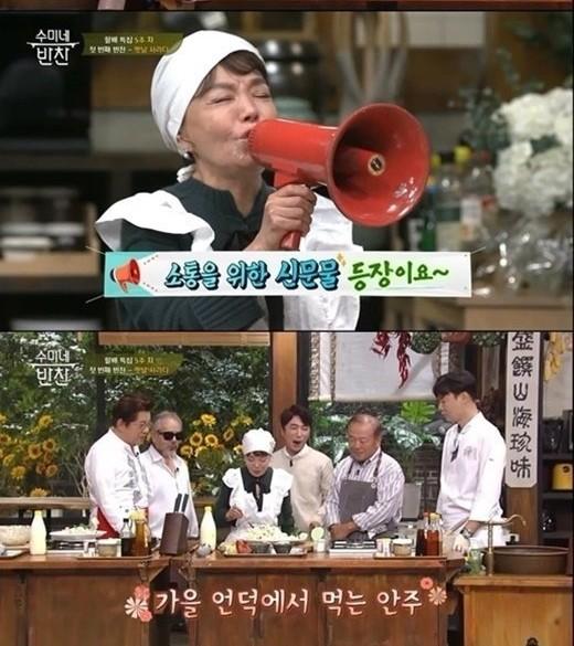 ‘수미네 반찬’을 통해 요리에 처음 도전했던 막내 전인권은 어느새 수미쌤의 말을 받아치는 여유를 가지게 된 것은 물론, 특유의 느린 손을 극복해내고 옆 조리대에 요리 품앗이까지 나서며 김수미에게 떵떵거리는 모습으로 스튜디오를 웃음바다로 만들었다는 전언.