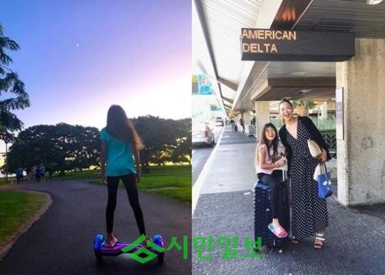 공개된 사진에는 공원에서 전동휠을 타고 있는 추사랑의 모습이 담겨있다. 훌쩍 자란 키와 길쭉한 팔다리가 눈길을 끈다.