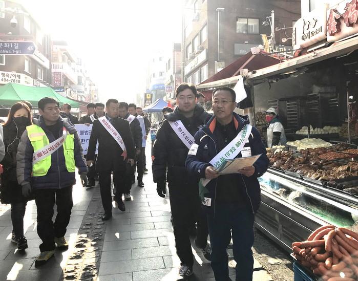 경기 안산시가 최근 원곡동 다문화마을특구 상점가 일대에서 경기옥외광고협회 안산시지부 회원 및 협력업체, 관계 공무원 등 50여명이 참여한 가운데 불법광고물 근절을 위한 민·관 합동정비 및 캠페인을 펼쳤다. 사진은 캠페인 전개 모습. (사진제공=안산시청)