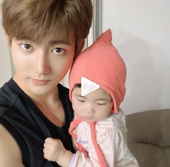 영상 속에는 진화가 딸 혜정이를 안고 있다. 두 사람의 뚜렷한 이목구비가 눈길을 끈다.