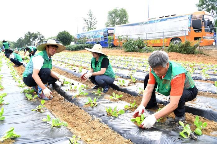 경기 하남시 새마을운동지회가 최근 선동 휴경지에 소외계층을 위한 '김장용 배추심기 행사'를 개최했다. 이날 사는 각동 새마을 회원과 김상호 시장 등 150여명이 참여해 1만3000포기의 배추를 심었다. 사진은 김 시장과 회원들이 배추를 심는 모습. (사진제공=하남시청)