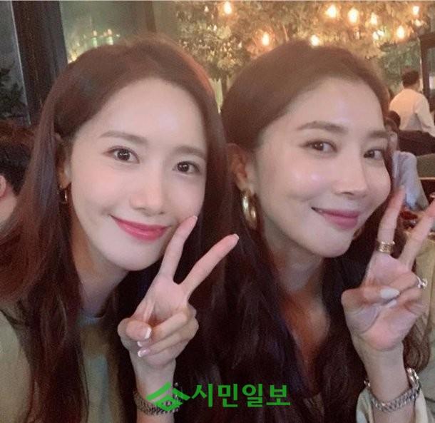공개된 사진 속 오윤아는 소녀시대 임윤아와 함께 웃으며 브이 포즈를 그리며 카메라를 쳐다보고 있다.