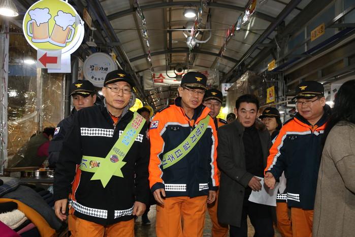 서울 서대문소방서는 최근 지역내 위치한 영천시장을 방문해 겨울철 전통시장 현지 확인 점검 및 캠페인을 했다. 이날 비상소화장치 및 화재 취약요인을 점검하고, 재난발생 위치표지판 정비 등을 했다. 사진은 시장을 살피는 모습.(사진제공=서대문소방서)