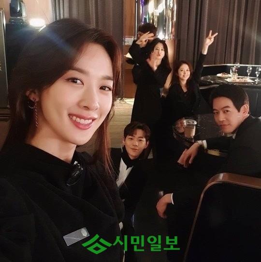 사진 속 이청아는 장나라, 이상윤 등 드라마 출연 배우들과 올블랙으로 맞춰 입고 인증샷을 남기고 있다.