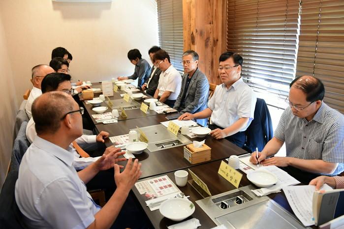 경기 화성시는 30일 일본 수출규제와 관련해 지역내 반도체 기업인 간담회를 개최했다. 이날 간담회에 참석한 박덕순 부시장은 6개 기업 임원진의 애로사항을 청취하고 대응방안을 논의했다. 사진은 애로사항을 듣고 있는 박 부시장 및 관계자들의 모습. (사진제공=화성시청)