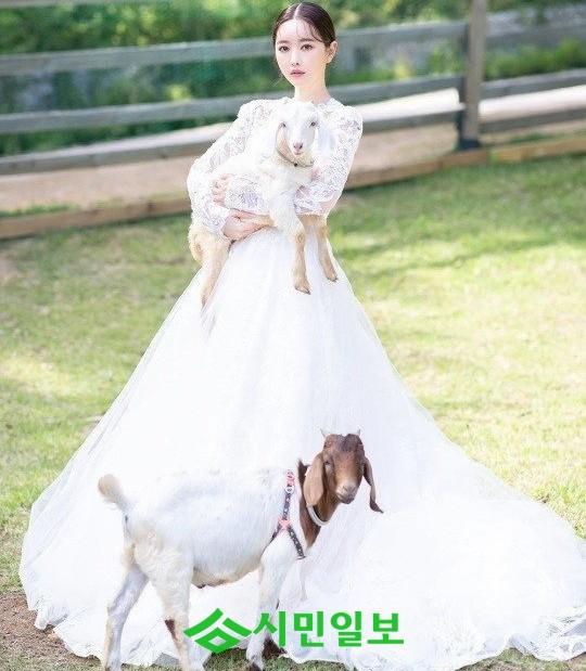 공개된 사진 속 홍수아는 백색의 화려한 드레스를 입고 염소를 안고 있는 모습. 사진에서 홍수아는 동화에서 튀어나올 법한 아름다운 비주얼로 압도, 팬들의 마음을 사로잡았다. 홍수아는 마치 곧 결혼할 신부처럼 단정하게 머리를 묶어 고운 미모를 한 층 더 돋보였다.