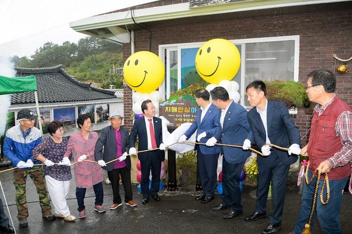전남 순천시가 치매안심마을 1·2호로 지역내 월곡마을과 서면 판교마을을 지정하고 최근 마을운영위원단, 지역 주민 등 200여명이 참석한 가운데 현판식을 개최했다. 사진은 허석 시장(가운데)과 관계자들이 '월곡마을 현판식'을 진행하는 모습. (사진제공=순천시청)