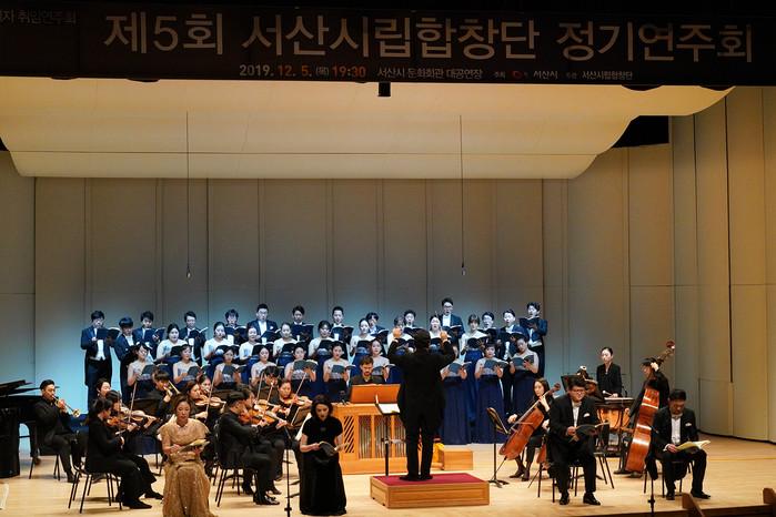 충남 서산시 시립합창단은 최근 서산문회회관 대공연장에서 600여명이 참석한 가운데 ‘제5회 정기연주회’를 개최, 솔리스트 4명과 오케스트라 바로크 콘체르토 서울과 함께 모차르트의 ‘구도자의 저녁기도’를 협연했다. 사진은 연주를 하는 모습.(사진제공=서산시청)