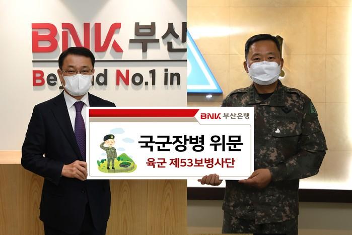 올해는 코로나19 상황을 고려해 부산은행 본점, 육군 제53보병사단에서 각각 비대면 사진촬영 방식으로 전달식을 진행했다.