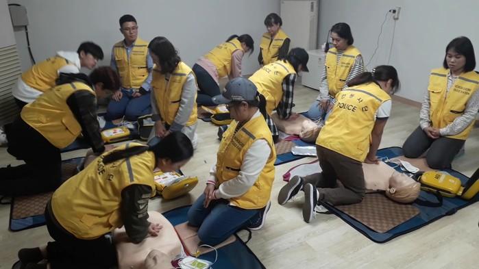 경기 부천오정경찰서는 최근 부천소방서와 협업을 통해 다문화치안봉사단 다문화가정 및 외국인을 대상으로 응급처치법 및 심폐소생술 교육을 실시했다. 이날 외국인들은 직접 심장제세동기를 이용해 심폐소생술 실습을 했다. 사진은 심폐소생술을 하는 모습.(사진제공=부천오정경찰서)