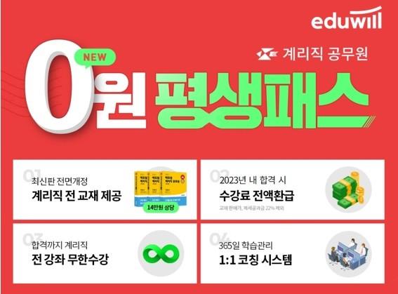 [시민일보 = 여영준 기자] 종합교육기업 에듀윌(대표 박명규) 공무원의 ‘2021 NEW 계리직 0원 평생패스’는 합격까지 전 강좌를 무제한으로 수강할 수 있다.