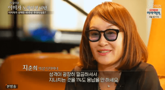tv조선 '이미자 노래인생 60년' 특집다큐에 출연했을 당시 지춘희 패션디자이너는 이미자의 60주년 콘서트 무대의상을 마련해줬다.