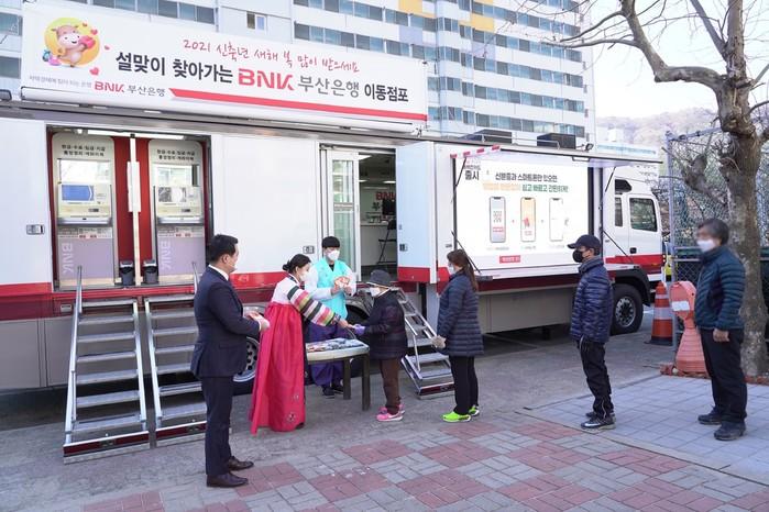 [시민일보 = 여영준 기자] BNK부산은행은 설날을 맞이해 은행 방문이 힘든 금융소외지역의 시니어고객을 위해 찾아가는 금융서비스를 실시했다.