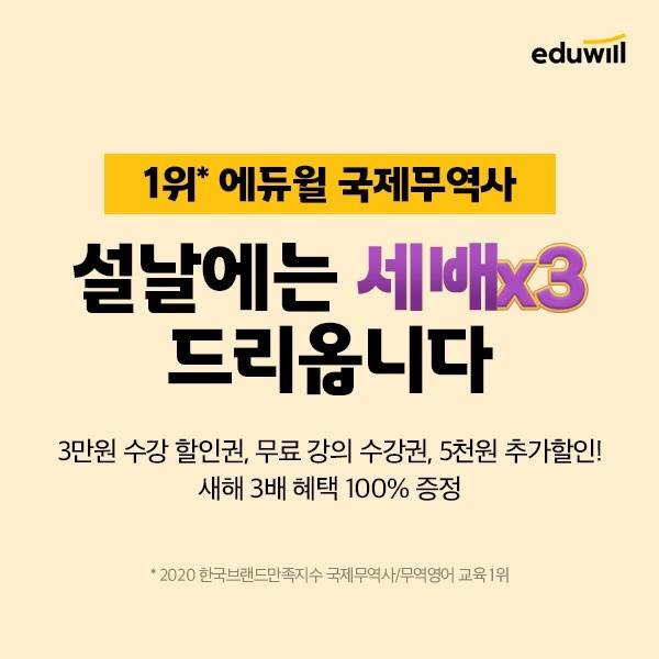에듀윌 국제무역사의 ‘새해 세배(3배) 혜택’은 오는 15일까지 진행된다.