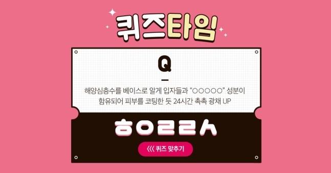 20일 버즈빌 퀴즈타임 이벤트에 “해양심층수를 베이스로 알게 입자들과 00000 성분이 함유되어 피부를 코팅한 듯 촉촉 광채 UP”이라는 문제가 출제됐다.
