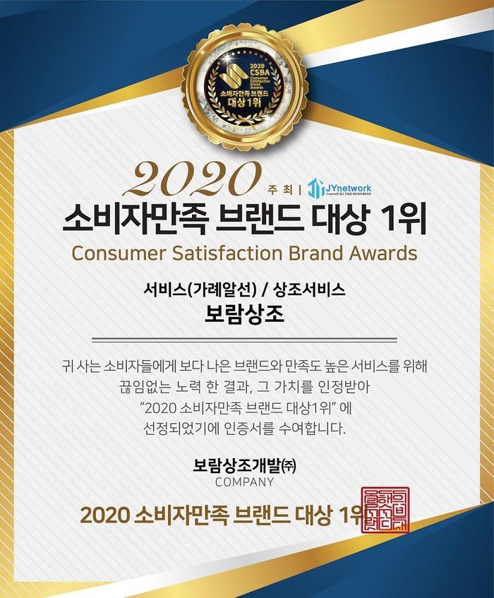 [시민일보 = 여영준 기자] 보람상조가 '2020 소비자만족 브랜드 대상' 1위에서 상조서비스 부문에 3년 연속 선정됐다.