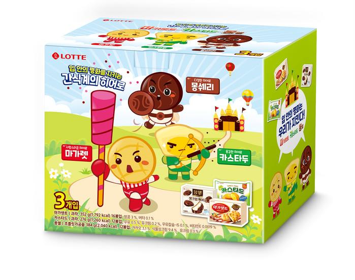 | ▲ 마가렛트카스타드몽쉘 히어로팩.(사진제공=롯데제과) |