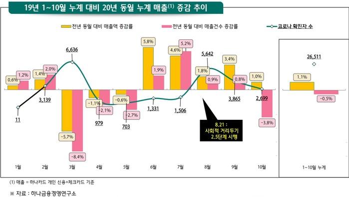 [시민일보 = 여영준 기자] 하나은행 하나금융경영연구소(이하 연구소)는 코로나19의 1차 유행기와 2차 유행기의 업종별 매출액을 비교한 보고서(‘코로나19가 가져온 소비 행태의 변화II’)를 통해 입시관련 업종이나 테마파크/레저 숙박업소 등의 업종은 1차 때보다 2차 유행기에 오히려 매출이 확대됐다고 16일 밝혔다.
