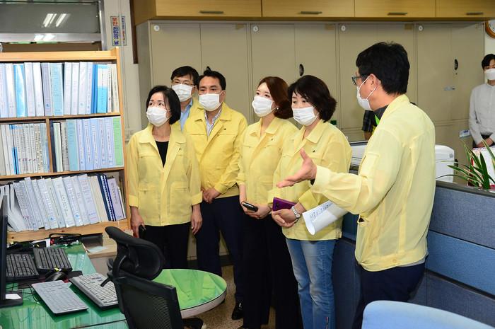 동작구의회(의장 조진희)는 지난 11일 동작구청 치수과 재난안전대책본부를 방문하여 관계자로부터 현황 등을 상세히 보고 받고, 밤낮으로 비상근무로 애쓰고 있는 직원들을 격려했다. 또한 계속되고 있는 집중호우에 구민 안전에 이상이 없도록 수방활동에 만전을 기해 줄 것을 당부했다. 사진은 동작구의원들이 관계자에게 설명을 듣고 있는 모습.