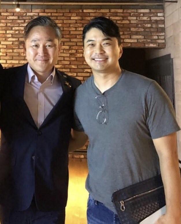 공개된 사진 속 정준은 표창원과 웃으면서 카메라를 쳐다보고 있다.