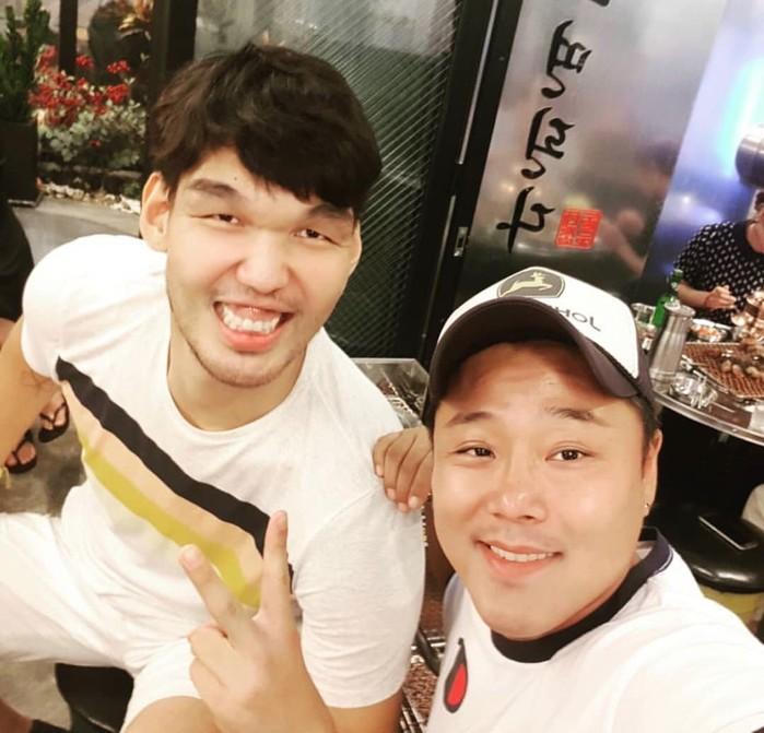 공개된 사진 속 송호범은 전 농구선수 하승진과 웃으면서 카메라를 쳐다보고 있다.