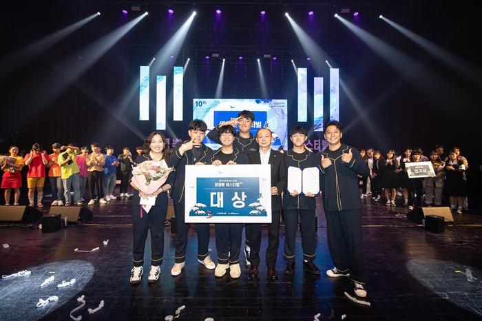 ▲ 생생 락 페스티벌에서 대상을 받은 전주 신흥고 마제스틱 밴드 학생들의 기념촬영 모습. (사진제공=JB금융그룹) |