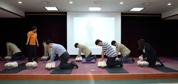 교육 강사로 나선 심현수 소방관은 "갑자기 쓰러지는 인명사고는 초동조치가 매우 중요한 반면 골든타임을 놓치는 경우가 많다"며 "내 옆에서 근무하는 직원에게도 충분히 일어날 수 있는 일인 만큼 초기 대응이 매우 중요하다"고 말했다.