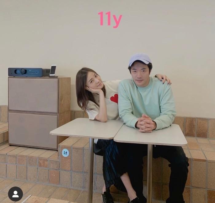 공개된 사진 속 권상우는 손태영과 테이블에 앉아 카메라를 쳐다보고 있는 모습이다.