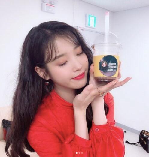 케이블채널 tvN 토일드라마 ‘호텔 델루나’를 응원하며 간식 차를 보내준 것에 대한 고마운 마음을 담은 인증이었다. 아이유는 음료를 들고 사랑스럽게 미소지으며 고마운 마음을 드러내고 있다.