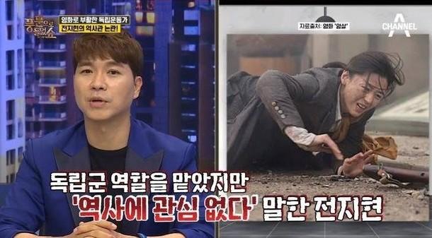 그런가하면 전지현은 안옥윤을 실감나게 표현하고자 민낯으로 촬영에 임했다고. 이 가운데, 홍석천은 “전지현 씨가 역사관 논란이 있었다는 이야기가 있다”고 질문했다.