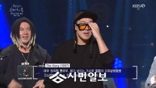 이 음반을 자료실에서 어렵게 구했다는 유희열은 "앨범 속지를 읽어드리겠다"며 "'힙합의 자유분방함에 나는 나의 음악의 틀을 과감히 벗어버렸다. 지금 힙합의 리듬이 다가오고 있다'"고 해 좌중을 폭소하게 만들었다.