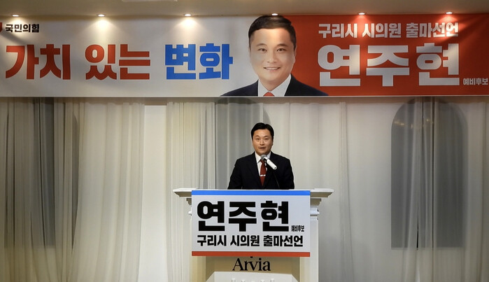 [구리=최광대 기자] 국민의힘 연주현 예비후보가 13일 오후 구리시 아르비아 웨딩홀9층에서 시의원 출마를 공식 선언했다. 그는 이날 선언문에서 ‘골목 주차 해소·시민 재산권 보호·세대 통합 도시 조성’을 핵심 비전으로 제시하며 “현장에서 답을 찾는 생활 정치로 구리의 변화를 만들겠다”고 밝혔다.