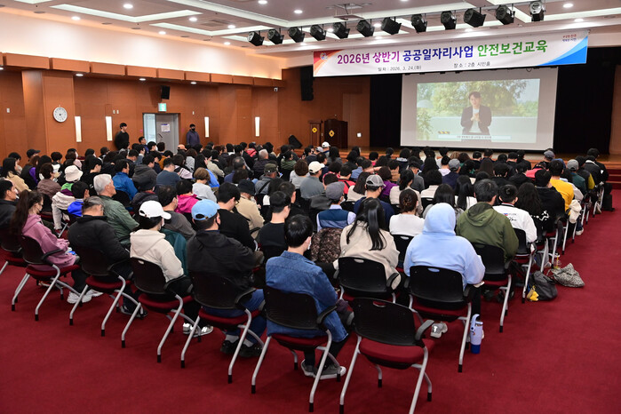 진주시는 2026년 상반기 공공일자리사업 참여자의 안전한 근무환경 조성과 사고 예방을 위해 24일 시청 시민홀에서 안전보건교육을 실시했다.