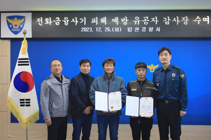 지난 19일, A씨는 적중면 자율방범대원으로 식당일을 하면서 손님 C씨가 “해외에서 신용카드가 발급되었다”라는 사기 전화에 속아 개인정보를 불러주는 것을 면밀히 살핀 후 전화금융사기 범죄를 의심, 경찰에 신고하여 피해를 예방 하였으며, 택배 배송일을 하는 B씨는 지난 20일, 합천군 초계면으로 택배 배송을 갔다가 D할머니가 아들이 납치 되었다는 사기 전화에 속아 현금 2천만원을 인출 하려던 것을 보이스피싱 범죄로 생각하고 경찰에 신고하여 전화금융사기 피해를 막았다.