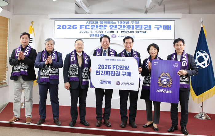 안양시는 1일 안양시청 접견실에서 관악회의 ‘FC안양 2026년 연간회원권 구매’ 행사를 열었다고 3일 밝혔다.이날 관악회가 구매한 연간회원권은 총 1,000만원 규모다.