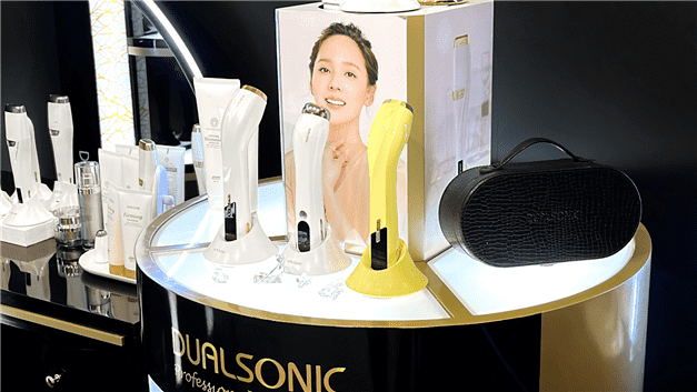 듀얼소닉은 이번 팝업스토어에 브랜드의 이미지에 걸맞는 고급스러움과 우아함을 표현한 블랙과 골드로 부스를 꾸몄다. 속 깊은 탄력관리에 효과적인 듀얼소닉의 스테디셀러 ‘듀얼소닉 프로페셔널’과 기존 제품 대비 더 강력하고 빠른 시술이 가능한 ‘프로페셔널 알파’ △업계 유일 트리플 고주파, 무한샷 기능, 탄력, 보습, 모공, 피부결, 피부톤 개선, 화장품 흡수 등의 7가지 프리미엄 스킨케어가 가능한 ‘듀얼소닉 맥시멈’ △부위별 딱 맞춘 7가지 주파수의 3중 고주파로 브랜드 최초 립고주파 모드가 포함되어 페이스부터 입 주변, 바디까지 고주파 집중관리를 할 수 있는 최신상 ‘듀얼소닉 알토’까지 다양한 제품들을 눈으로 직접 보고 체험해 볼 기회를 제공한다.
