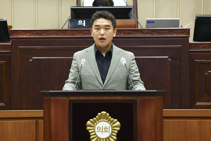 | ▲ 제318회 임시회 제2차 본회의에서 발언하고 있는 한채훈 의원 모습 /사진제공=의왕시의회 |