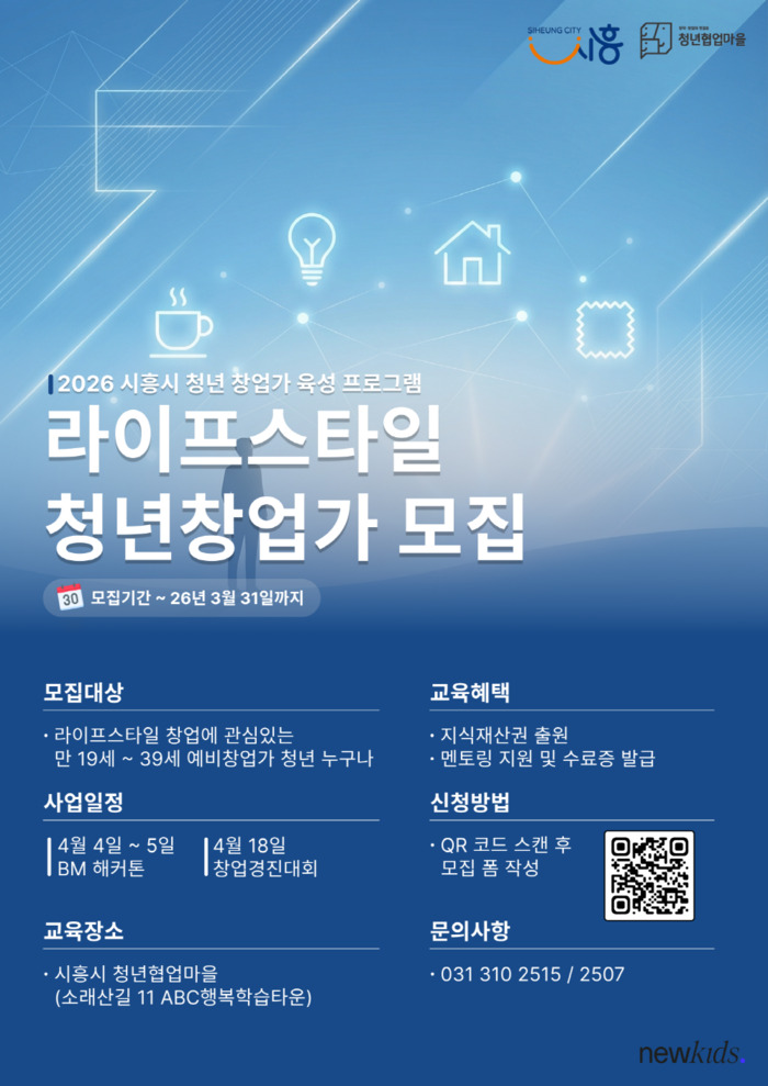신청은 홍보 포스터에 있는 정보무늬(큐알코드)를 통해 가능하며, 기타 문의 사항은 시흥시 청년청소년과로 하면 된다.