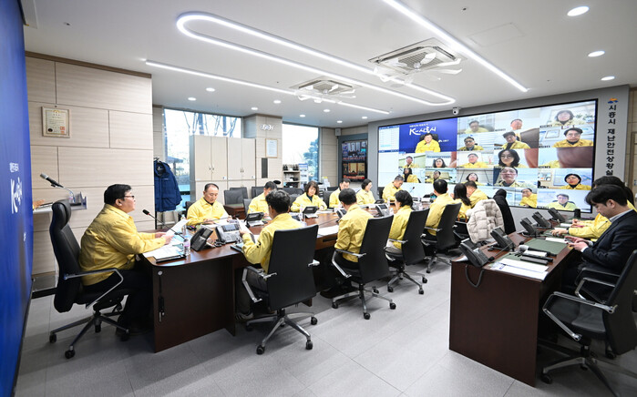 | ▲박승삼 부시장 주재로 ‘겨울철 자연재난(한파) 대응상황 점검’ 회의를 진행하고 있다 /사진제공=시흥시 |